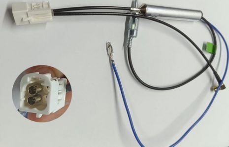 MIni Fakra 4 pin connector to SMB 90° male (DAB) + DIN male (AM/FM) Blue wire remote antenna to new radio